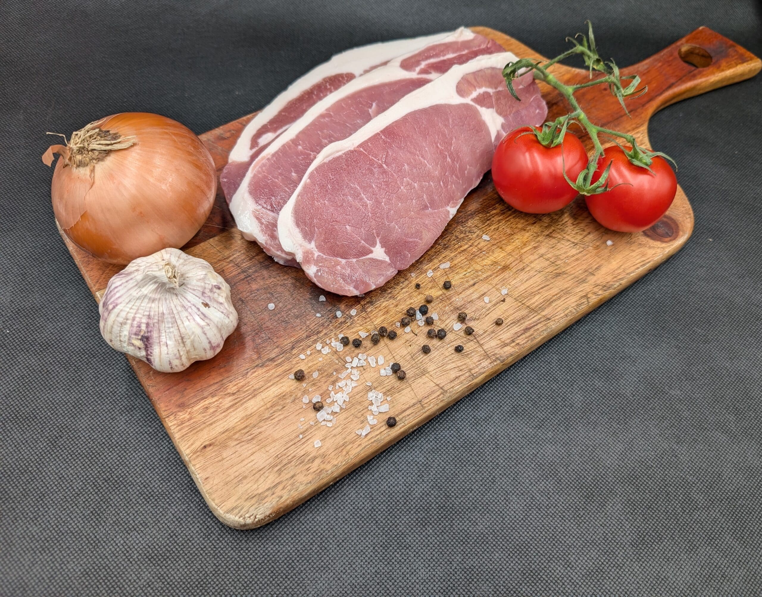 They have the thickness of a steak with the delectable goodness of our exquisite bacon. Three in a pack and delicious with either apple or cranberry sauce.